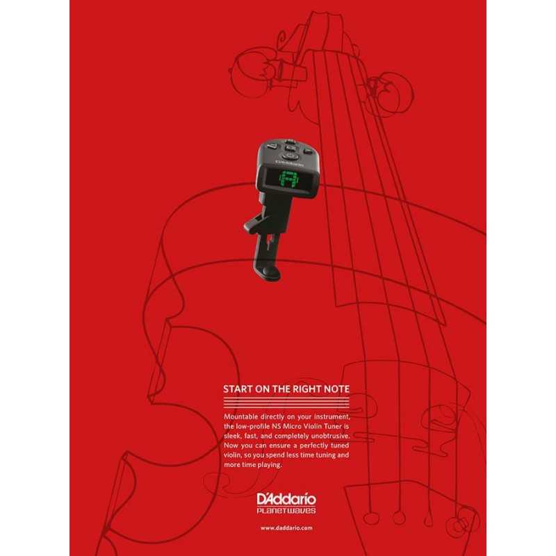 Take a look at all the members of the NS Micro Family! The NS Micro Violin Tuner features an easy-to-read, multi-color display and visual metronome in an attractive compact design. A non-marring, lever-lock clamp holds the tuner securely to the instrument while allowing easy application and removal. The precision violin tuner is not only perfect for tuning, the unique mounting system and fast pitch response allow it to be used as an effective practice tool for referencing and improving intonation while playing.