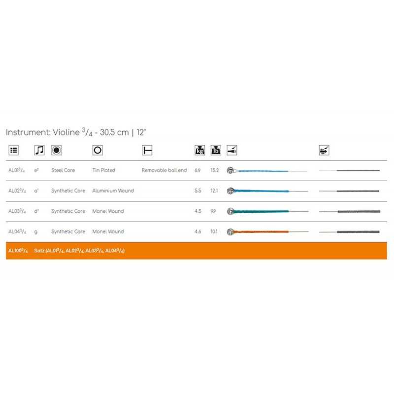 ALPHAYUE D- and G-strings in 3/4 to 1/16 are wrapped with Monel.