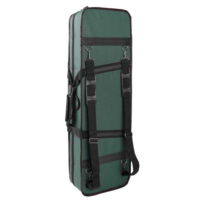 - Oblong case in polyfoam with 2 rucksackstraps, a closed space for accessoires and 4 bow holders