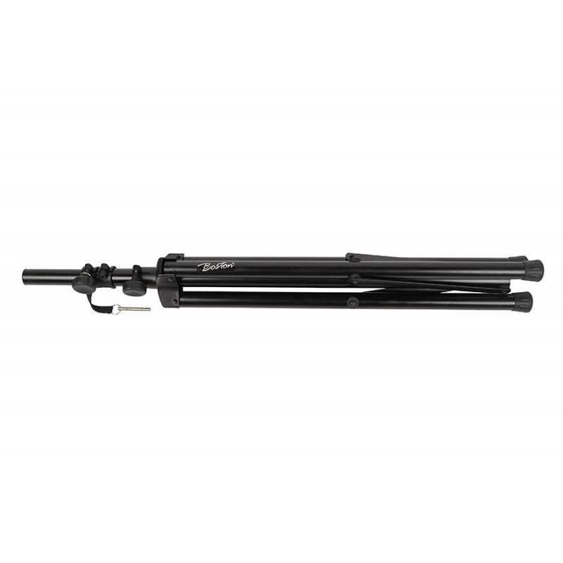 The BS-090-BK is an affordable, steel speaker stand from Boston.It is ideal for top boxes and the small full range speakers. It is height adjustable with a minimum height of 1.25m and a maximum of 2m. The height-adjustable tube is provided with 6 holes, which by means of a safety pin ensure that the tripod cannot suddenly collapse. The rubber pads under the stable three- leg ensure grip and protect your base.