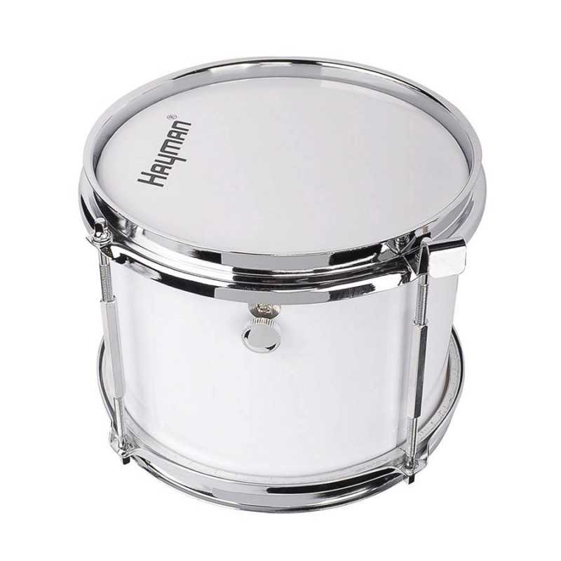 junior snare drum, white with chrome hardware, with sticks, belt and hook, 8 inch