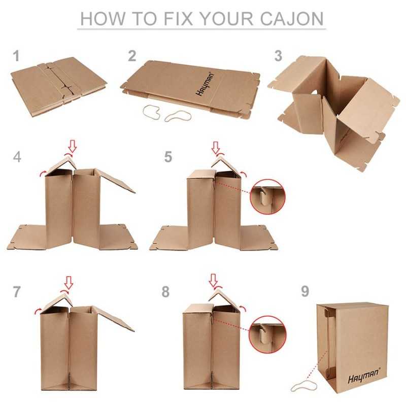 DIY cardboard cajon, 33x31x44cm, fixed snare, flat packed
