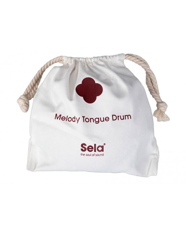 To get you started right out of the box, each Sela Melody Tongue Drum comes with two high-quality mallets with birch wood handles and round rubber heads. The tone fields can also be struck with the fingers. The meditative sound of the Sela Melody Tongue Drum enchants players and listeners alike. On top of that, thanks to its compact size, it finds a chic place everywhere - whether at home, in the office, yoga studio or even on the road in your luggage. For safe transport, a practical cotton bag is included, which is lined with red velvet on the inside. Rubber feet ensure a secure stand, and a rubber ring protects the outer edge of the Sela Melody Tongue Drum from scratches.