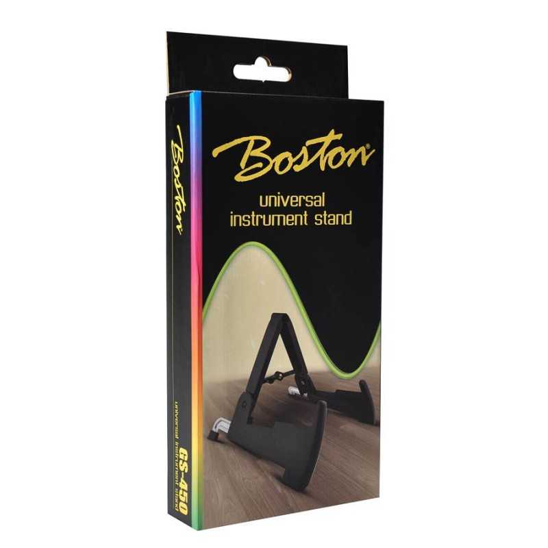 The Boston GS-450 is a small but stable and foldable instrument stand. You can use it for guitars (acoustic and electric), bassguitar, mandolin, bouzouki, ukulele and more.