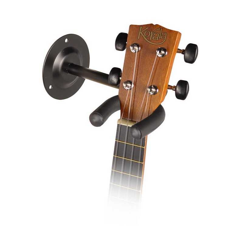The Boston FC-525 is a simple , robust and effective wall mount for the ukulele. In the round attachment part, there are three holes that can be used to help attach it to the wall . The holder for the neck or head of your ukulele while it's in the rest position is equipped with a spongy layer to protect your instrument . This is not appropriate for a fragile nitro- cellulose lacquer . The angle of the wall mount , as opposed to a straight wall mount (the Boston FC - 515), shows your ukulele from the side (relative to the mounting wall ), where the FC - 515 shows your ukulele from the front or back instead (relative to the mounting wall).