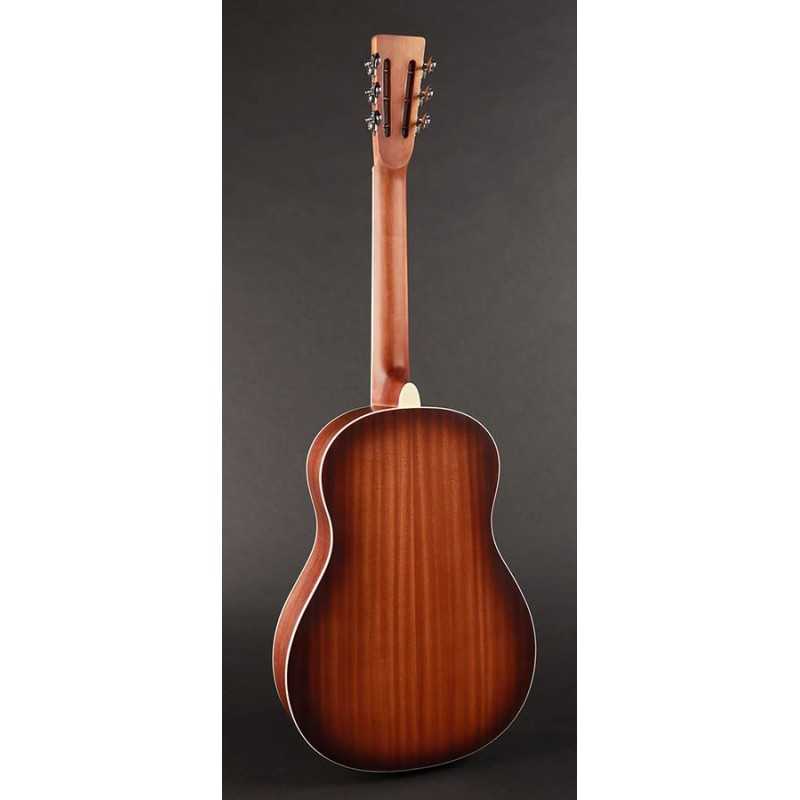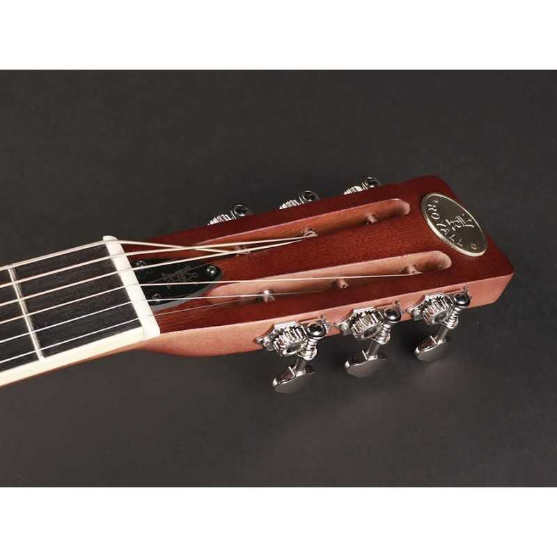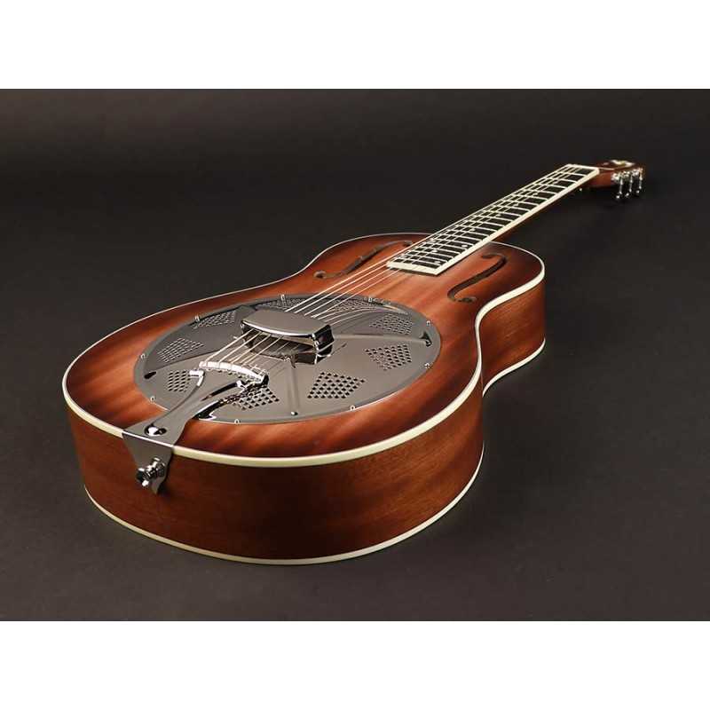 This wooden body 12 fret resonator guitar sounds like the dusty crossroads in the 1930s: warm, gritty and authentic. The dark sunburst finish provides a great look that fits the sound perfectly. The playability is, as with all Royall Guitars fantastic for both fingerstyle and slide guitar playing.
