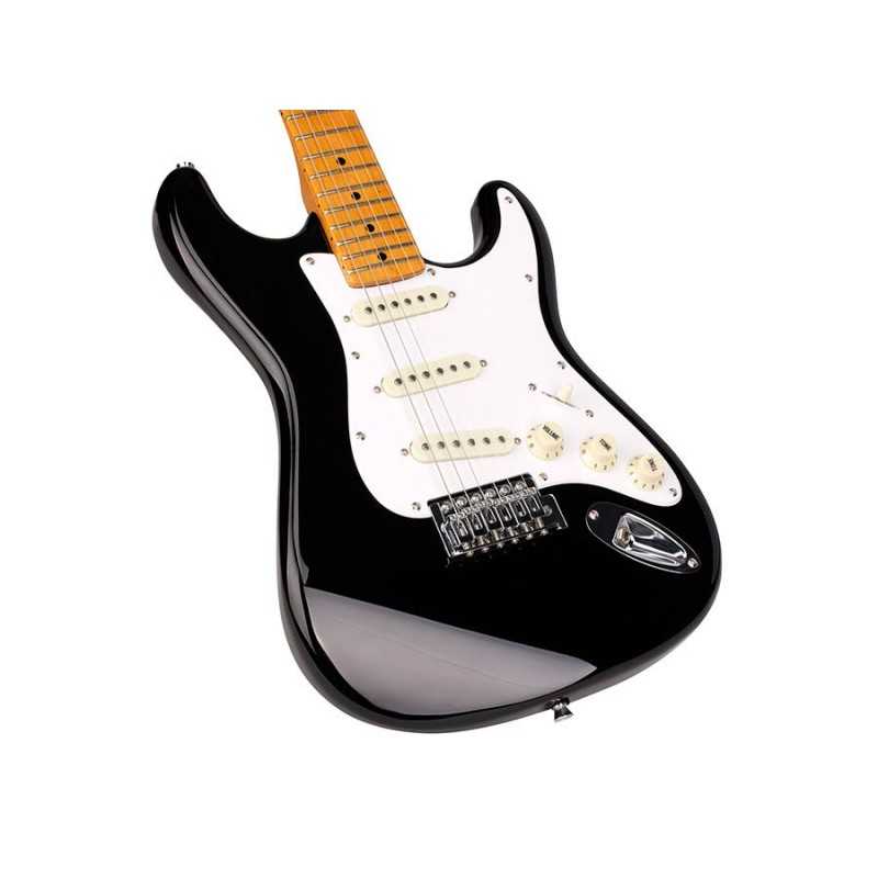 electric guitar 57 vintage style, 3 single coil pickups, vintage trem, black, gig bag