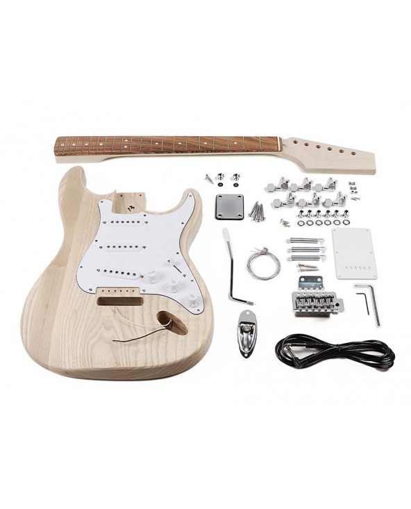 guitar assembly kit, Stallion model, ash body, maple neck, pauferro fb, S-S-S pickups