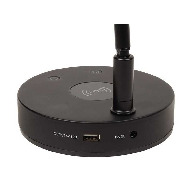 piano LED lamp T-shape with wireless charger in lamp base, black aluminium housing, incl. PSU