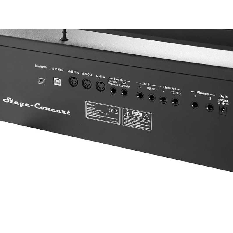Connections : Bluetooth connector, L/R outputs, L/R inputs, USB to host, midi in/out/thru, pedal 1 & 2 connectors, DC12V power