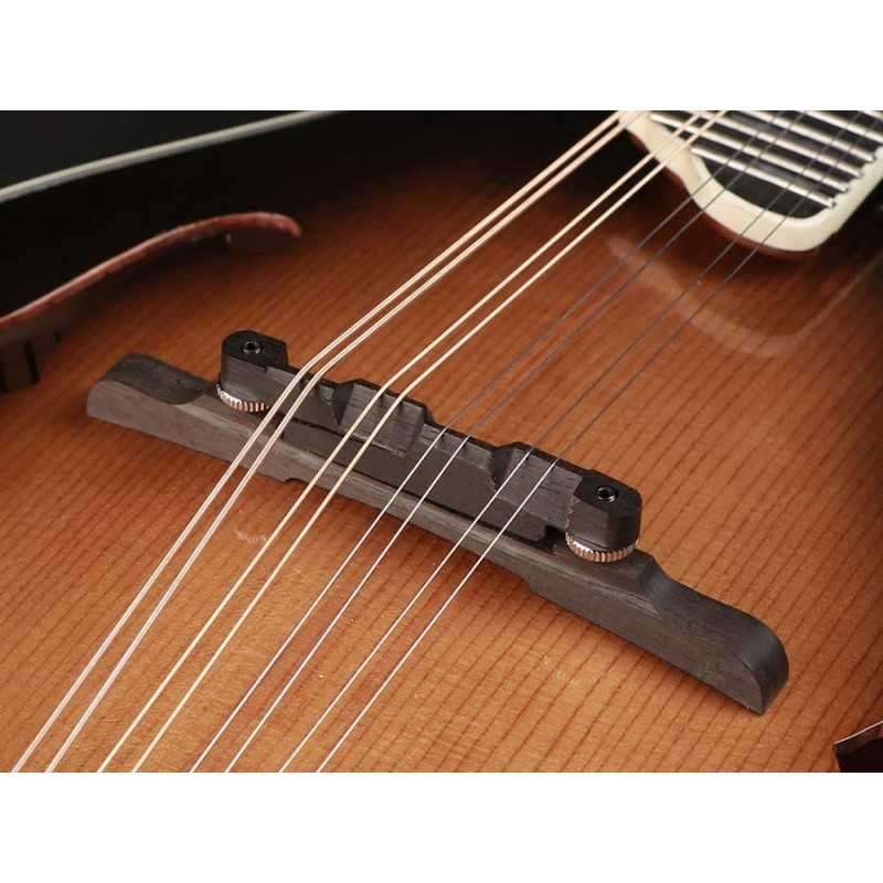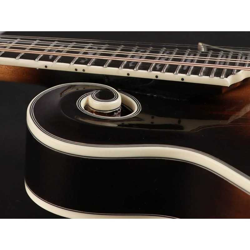 The traditional look and sound can be found in this all solid spruce/maple/ebony F-type mandolin. Features good looks with excellent playability.